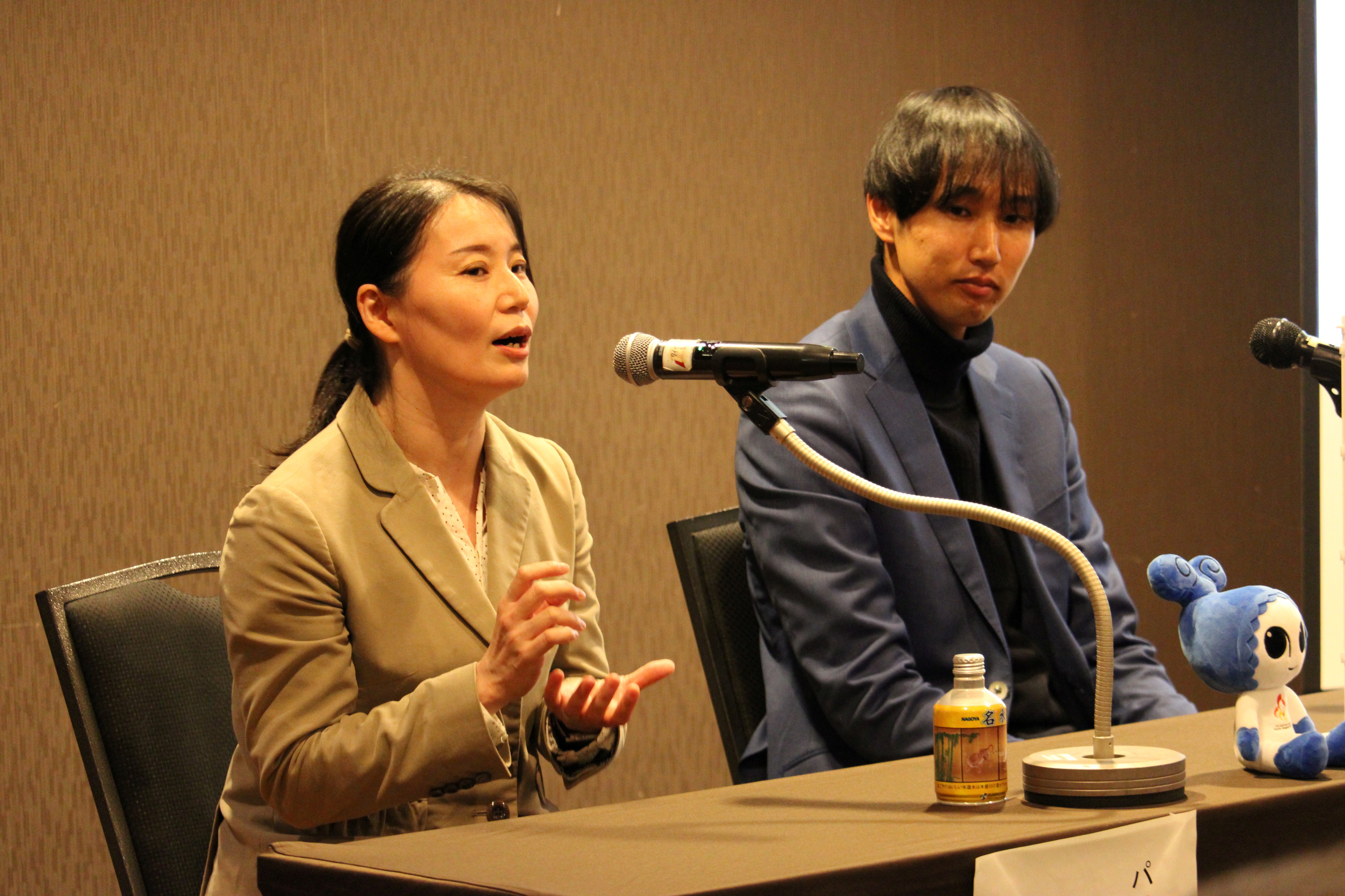 アスリートにとっての「食」の大切さを参加者に伝える戸邉選手(写真右)と伊藤選手(写真左)